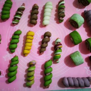 这个就是几种颜色的面叠加起来卷成条,切块。
