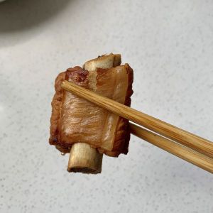 我炒的颜色不够深,照我爸爸的说法每块排骨都应该上色…