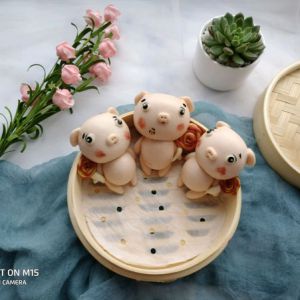 分别蘸水粘贴上去。用红曲粉刷一点腮红。放入蒸锅发酵至1.5倍大,新手做好差不多发酵好了,直接蒸就可以。大火烧开转中火蒸12-15分钟,关火闷三分钟开盖。时间根据馒头大小决定。