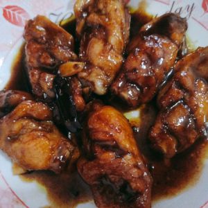 少量油,加入姜蒜煸香,放入鸡翅翻炒,到入可乐,少量酱油,盐,白糖和八角桂皮。