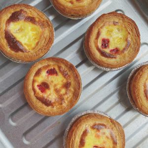 烤箱200度预热10分钟,放入做好的蛋塔,上下火200度,25分钟左右