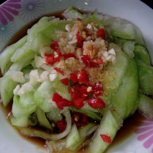 1.取适量的新鲜西瓜皮,用瓢羹将吃剩后残余的红瓤去除,再用水果刨去西瓜皮2.用水冲净处理好的西瓜皮,切薄片,厚度匀称。3.适量盐抓匀,腌制10分钟左右或者略长4.利用腌制的时间备料:蒜末碎和新鲜小红尖椒碎5.腌制时间到,将西瓜皮渗出的水倒掉,加入蒜末碎、小红尖椒碎、鸡精、白糖、玫瑰醋、鲜味生抽拌匀即可。