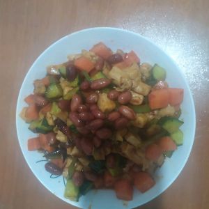 锅里放油,放入葱姜蒜辣椒,爆香放郫县豆瓣酱,翻炒几下,倒入胡萝卜,黄瓜,鸡胸肉,放适量白糖,翻炒2分钟,出锅,美味的宫保鸡丁就完成了!