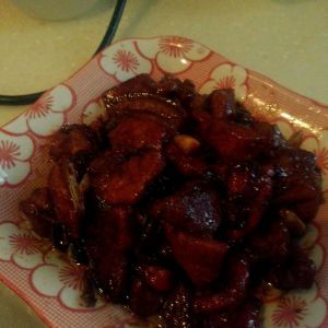 起锅,倒油,油热了放糖,油和糖的比例是2:1,把糖炒至栗色。照片拍花了
