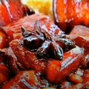 小火放入一点底油,加入葱片香叶炒香,加入一勺耗油,一勺半生抽,半勺老抽,一碗黄酒,大火之后加入糖色,倒入肉,汤能沒过肉,水开之后小火,加入盐和味精,上盖小火炖一个半小时