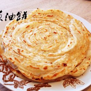 平底锅少放几滴油,放入大饼皮,烙至两面金黄(注意用中小火慢慢烙,火大了容易糊,口感也比较硬)