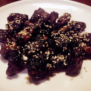 水要稍干时倒入老抽上色。倒出小排(倒出老抽汁备用)