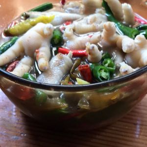 将煮好的鸡脚冲水,过凉,然后将泡椒水准备好!倒入鸡爪!最后进冰箱,放一夜!