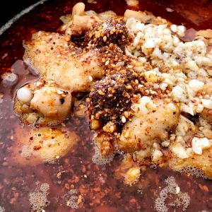 煮好后都倒入大碗里撒上蒜碎和辣椒碎,锅刷净倒入少许油加上一点香油烧热后倒在上面即可。