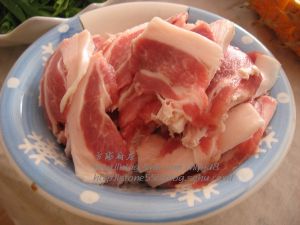 五花肉切薄片。