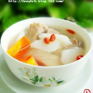 砂锅放适量水烧开(一次放够,中途不再加水),把排骨和姜、料酒、八角一起放入,用大火烧开后转小火。这时加入几滴白醋,不仅可以让排骨中的钙溶入汤汁中,还能使汤味更加鲜美。醋不要加多了,否则排骨就该变味了。小火煮一小时后,再放入山药、胡萝卜,小火再煮1小时,放枸杞和盐调味即可。