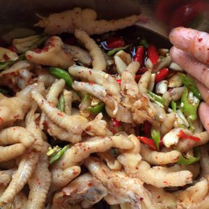 鸡爪煮好……凉水浸泡……去油………去骨……一定要多洗几遍……这样鸡爪会很有口感