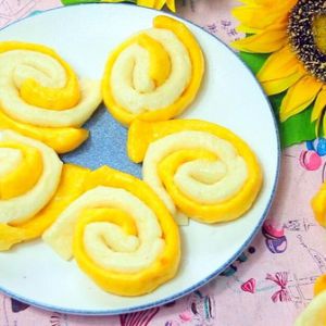 黄色面团:面粉(黄色) 100克,蒸熟南瓜泥 70克,酵母 2克