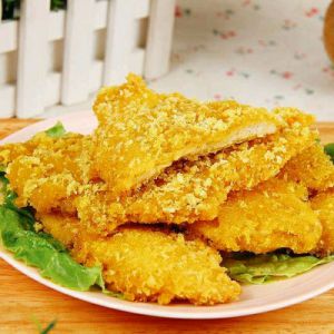 拿一块腌制好的鸡胸肉放入鸡蛋液翻滚一圈,沾上鸡蛋液