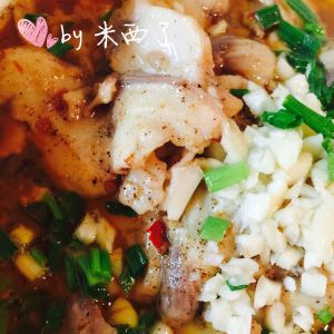 撒上胡椒粉、蒜泥和葱花,淋上热油
