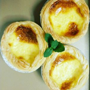 装8分满,烤箱上下火200度预热5分钟,在烤30分钟就可以了。我里面加了葡萄干,大号蛋挞皮做了24个。