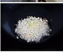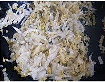 炒锅置火上,放油烧至5成热,放葱末、姜末,爆香,下酸菜丝,煸炒。