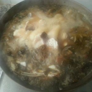 煮沸后,转小火。至酸味扑鼻后,加入腌制鱼片,2分钟后关火。大功告成,