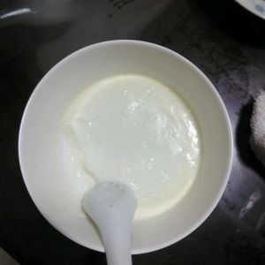 将小碗里的牛奶倒入装有鸡蛋清的大碗,搅拌均匀之后,再把混合液分别倒入2个小碗里。放入锅里,隔水蒸15分钟。