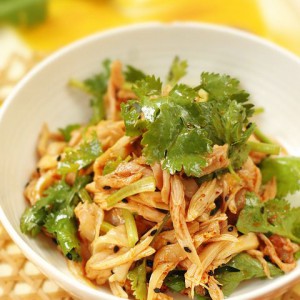 加入香菜碎,熟芝麻,加入白糖,盐,鸡精,美极鲜,辣椒油,香油拌匀即可。