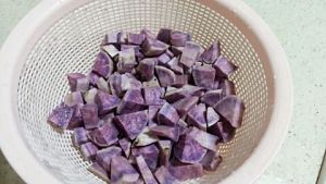 把洗干净的紫薯切块