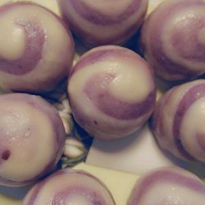 把擀好的面皮中间放白色或紫薯圆面团,捏和口朝下即可。怕黏和不好面皮上可刷层水。中间也可以放豆沙,紫薯泥做馅。