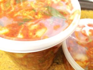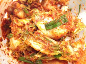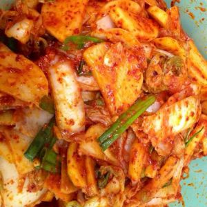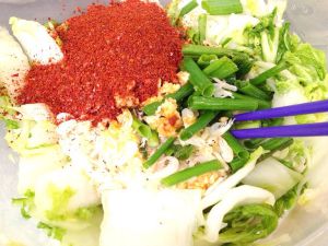 戴上一次性手套!将佐料与白菜全部混匀,这时倒入适量的白醋,风味更佳