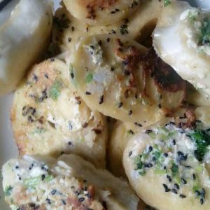 备好材料 香葱 香菜切沫 豆腐用勺子压成泥 鸡蛋打撒 混合 加入牛奶 黑芝麻