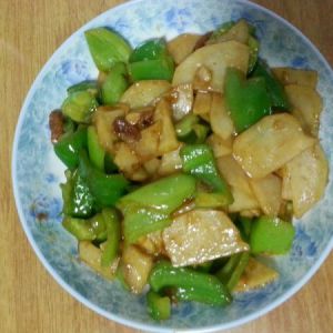 肉下锅出油,放葱姜末把油炒香,放土豆片炒,加酱油,放青椒、尖椒翻炒,加盐加蒜末出锅。简单吧