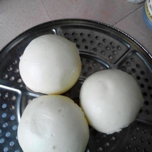 把面团揉成长条,切成一个个馒头上蒸笼再次发酵,最好在太阳光下晒晒,馒头会皮簿好看好吃