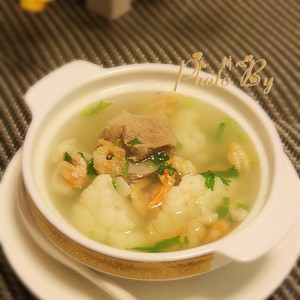 将花椰菜择洗干净,切朵,放入盐水中浸泡30分钟,冲洗一遍,沥干。