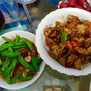 茄子先过油炸,裹上(淀粉4勺,面粉1勺,一个鸡蛋打成浓一点的粉浆)下油锅炸至金黄,外焦里嫩,捞出,从起油锅,下蒜跟配菜炒,放盐,生抽,少量番茄酱,下炸好的茄子,起锅放耗油跟水淀粉勾芡,完成