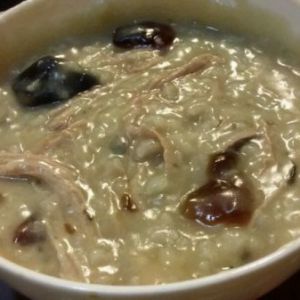 粥好了之后,把瘦肉夹出来(不要犯二用手拿,那就多了个下粥菜:白灼猪蹄),待瘦肉凉之后,用手顺着瘦肉的纹路,撕出两三毫米宽的肉丝(切记一定用手撕不要用刀切哦!出来的口感差很远),把肉丝放回到粥里