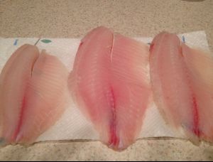 罗非鱼取三大块,用水冲洗干净,擦干鱼上的水。此次小编用的是超市卖的真空包装的已经处理好的鱼肉。