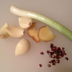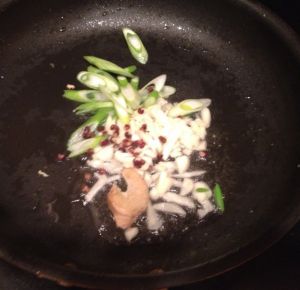 将煎鱼的油倒出,只留少部分在锅中。大火,下葱姜蒜花椒炒香。