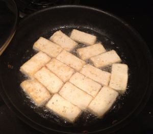 豆腐切块,同上方法下锅煎至两面金黄盛出。