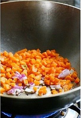 倒入胡萝卜丁略炒