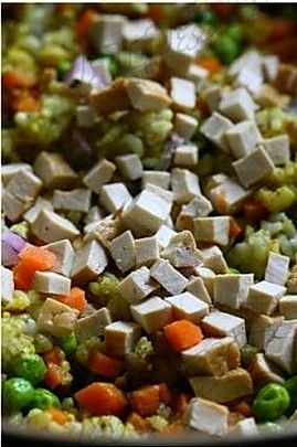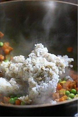 倒入杂粮饭,不断翻炒至均匀