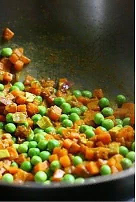 翻炒一会至豌豆半熟