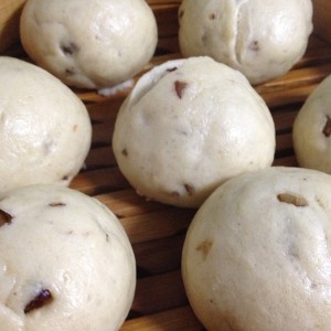 面包机里发酵好之后拿出来,揪成一个个小剂子,捏捏搓圆就可以了,蒸笼底涂点油的话可以防止粘底