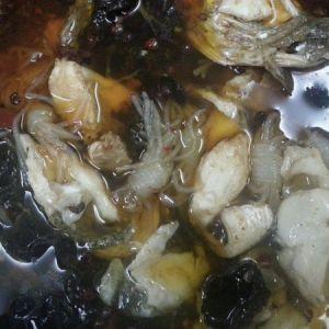 锅下油,这次油要多,放辣椒和花椒粒炒香,大概一两分钟,然后把热油浇到鱼上,ok啦~