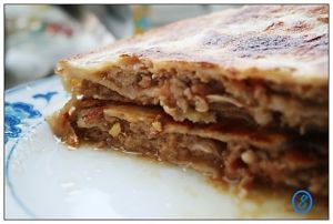 最好玩的开始了,包肉饼,跟一个大饺子一样。每家做肉饼的步骤都不一样,我们家的这个是大肉三角!~