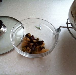在等待牛奶冷却时在另一个碗里放一些蜜豆,根据个人口味适量添加