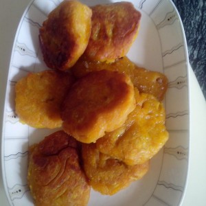 最后可将煎熟的南瓜饼上撒糖(根据个人爱好)。