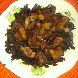 猪肉放姜入清水煮一个半小时,之后捞出来切一厘米块。梅干菜泡十分钟,之后沥干备用。锅入油烧热放葱姜蒜爆香,入糖盐梅干菜炒5分钟,以后捞出备用。把猪肉放盘子里,上面盖上炒好的梅菜,以后放到锅里大火蒸半个小时。最后把蒸好的菜拿出来,沥出汤汁备用。最后一步,拿个盘子盖上,180°翻转,打开盖子,把刚才的汤汁入淀粉勾芡浇入盘,OK,开吃。