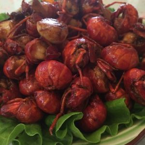 倒入虾球翻炒变色,然后加适量盐、酱油、料酒
