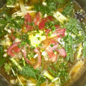 香菜 蒜苗切段 姜拍开 番茄切小块备用