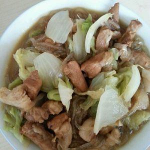 太着急做了,忘了拍照。事先将粉条用凉水泡四个小时,猪肉切成五厘米左右的长条,葱切段,姜切片。