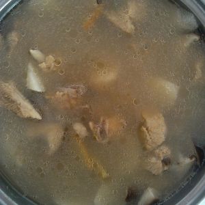 加入适量的盐(少许,不要过咸,只要是香菇和山药入味,排骨汤清淡点为益),小火煮10分钟左右。美味的香菇山药排骨汤就完成了。