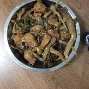 将鸡切成小块,因为是刚杀好的,所以就只加了料酒去腥,没有过热水